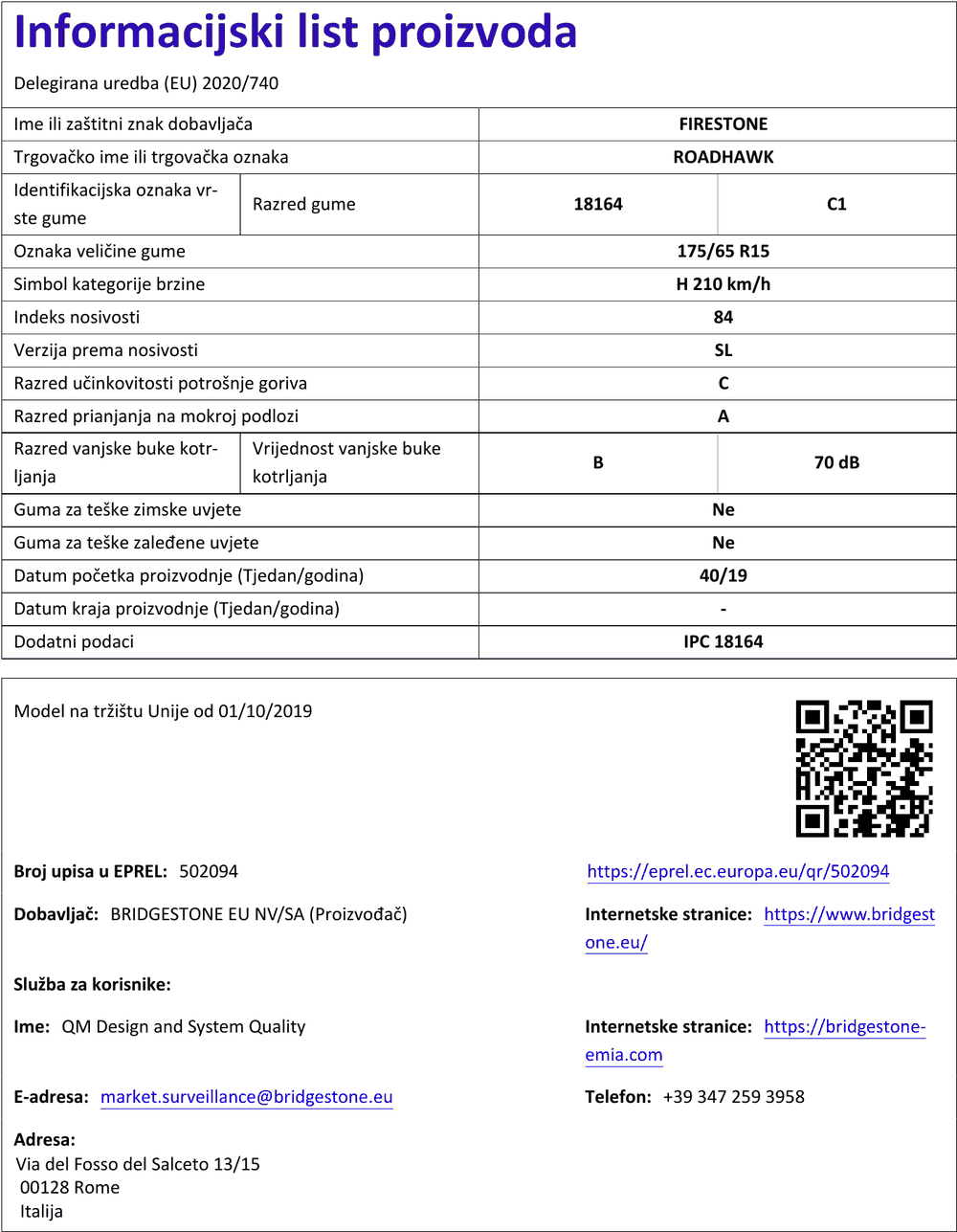 Ljetne gume firestone ROADHAWK 175 / 65 R R15 84H