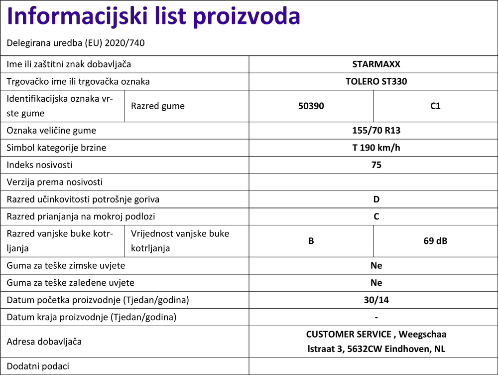 Ljetne gume starmaxx TOLERO ST330 155 / 70 R R13 75T