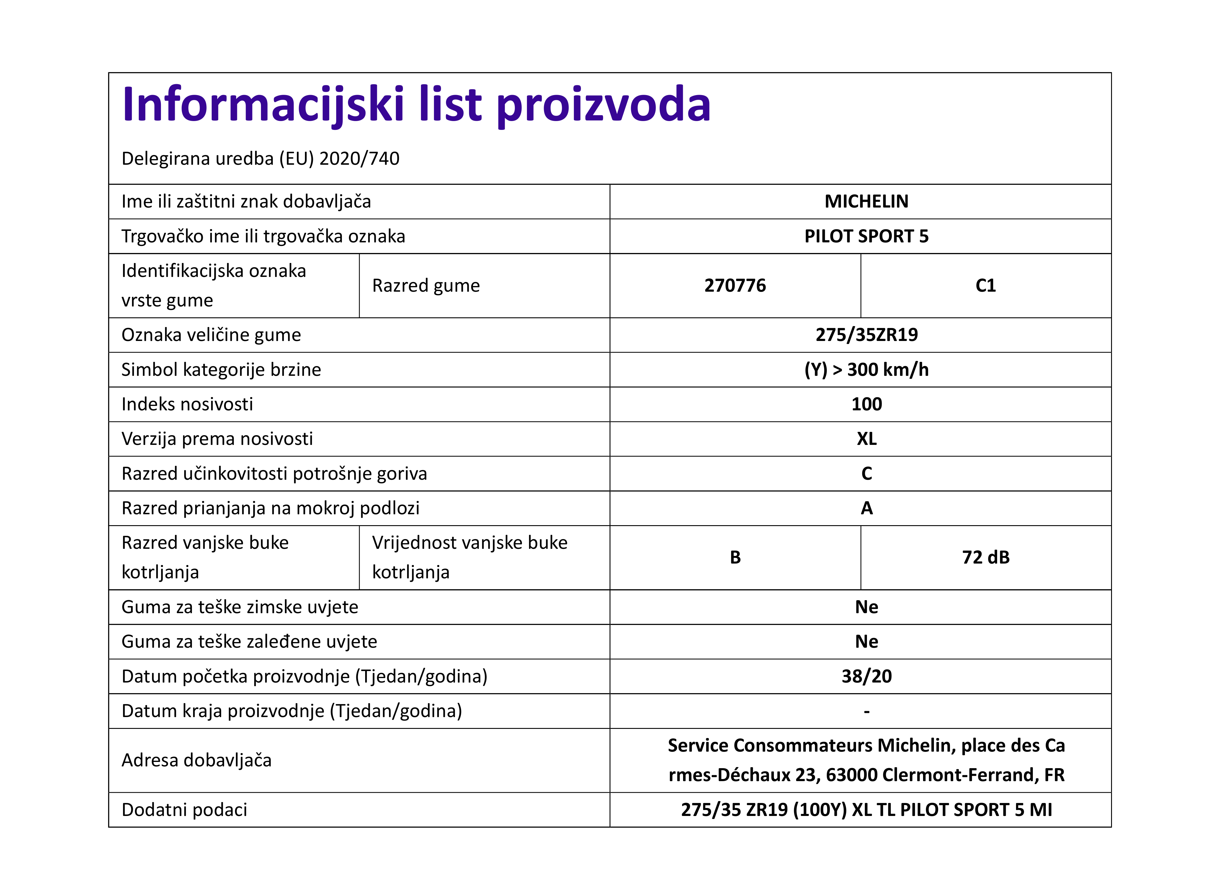 Ljetne gume michelin PILOT SPORT 5 275 / 35 R R19 100Y