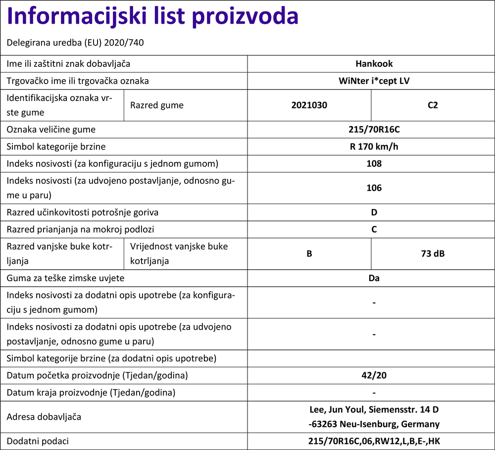 Zimske gume hankook RW12 215 / 70 R R16C