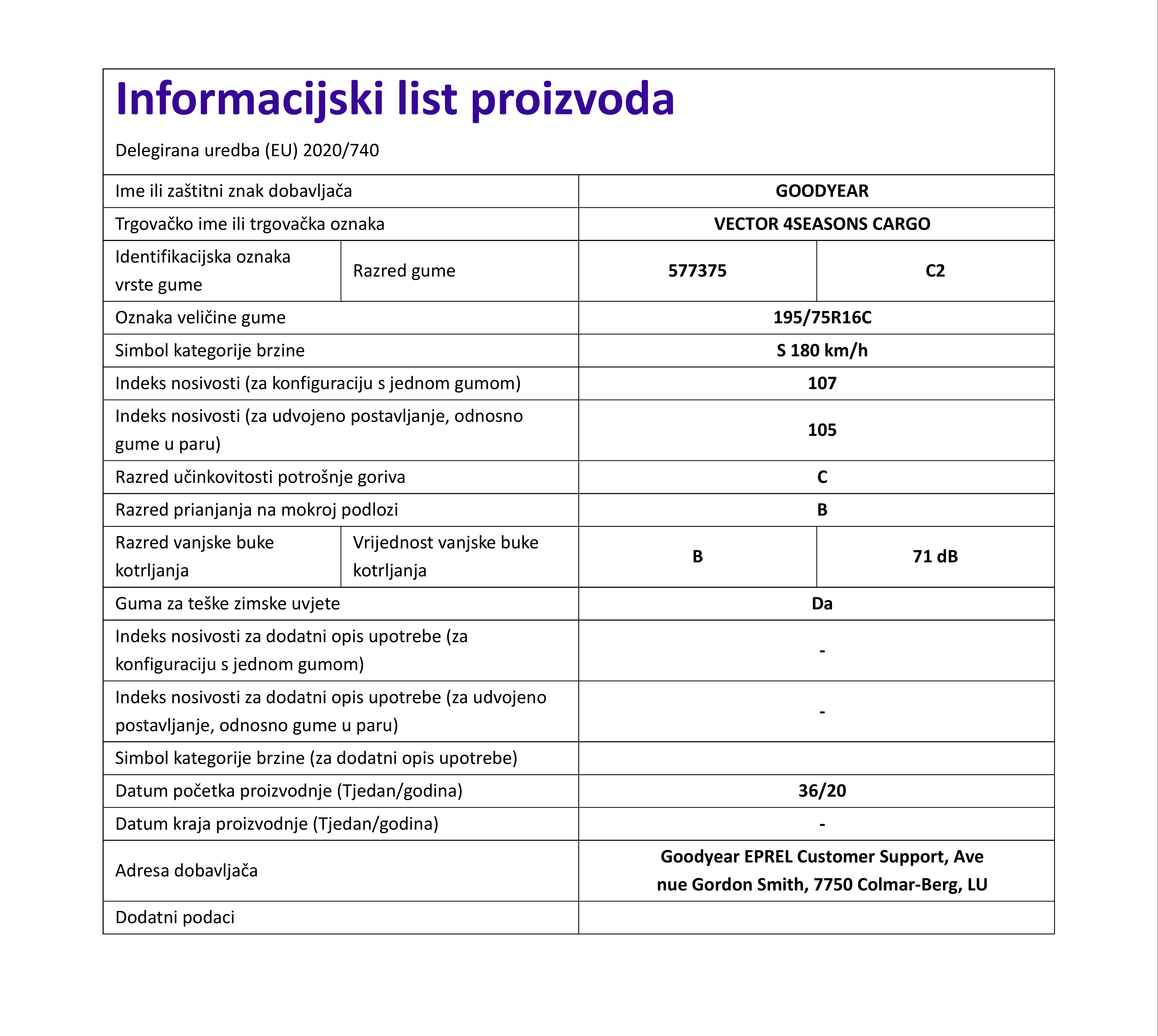 Cjelogodisnje kombi i polu gume goodyear VEC 4SEASONS CARGO 195 / 75 R R16C 107S