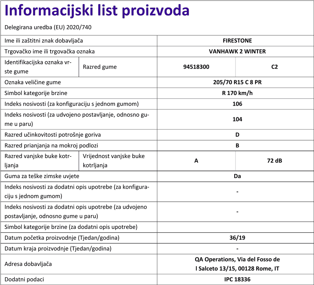 Zimske gume firestone VANHAWK 2 WINTER 205 / 70 R R15C 106R