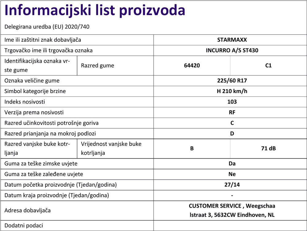 Cjelogodišnje gume starmaxx INCURRO AS ST430 225 / 60 R R17 103H