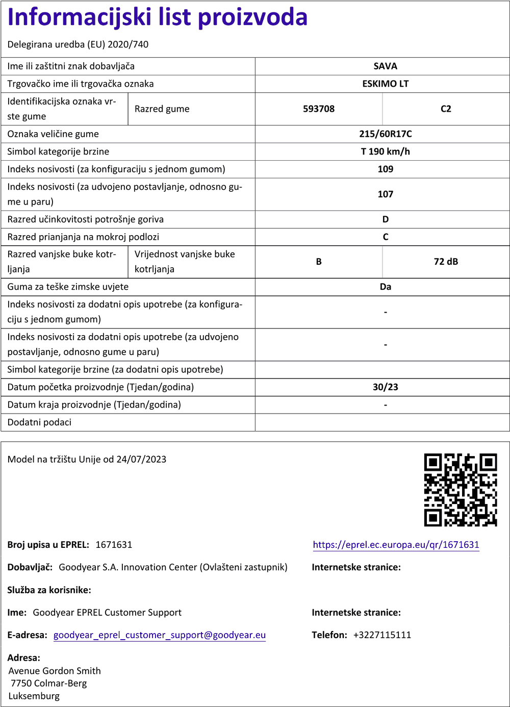 Zimske gume sava ESKIMO LT 215 / 60 R R17C 109T