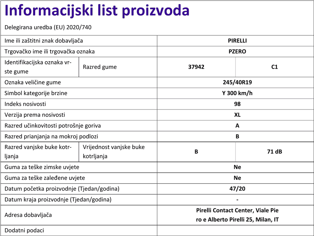 Napomena: Slika gume je simbolična. Guma dolazi bez felge.