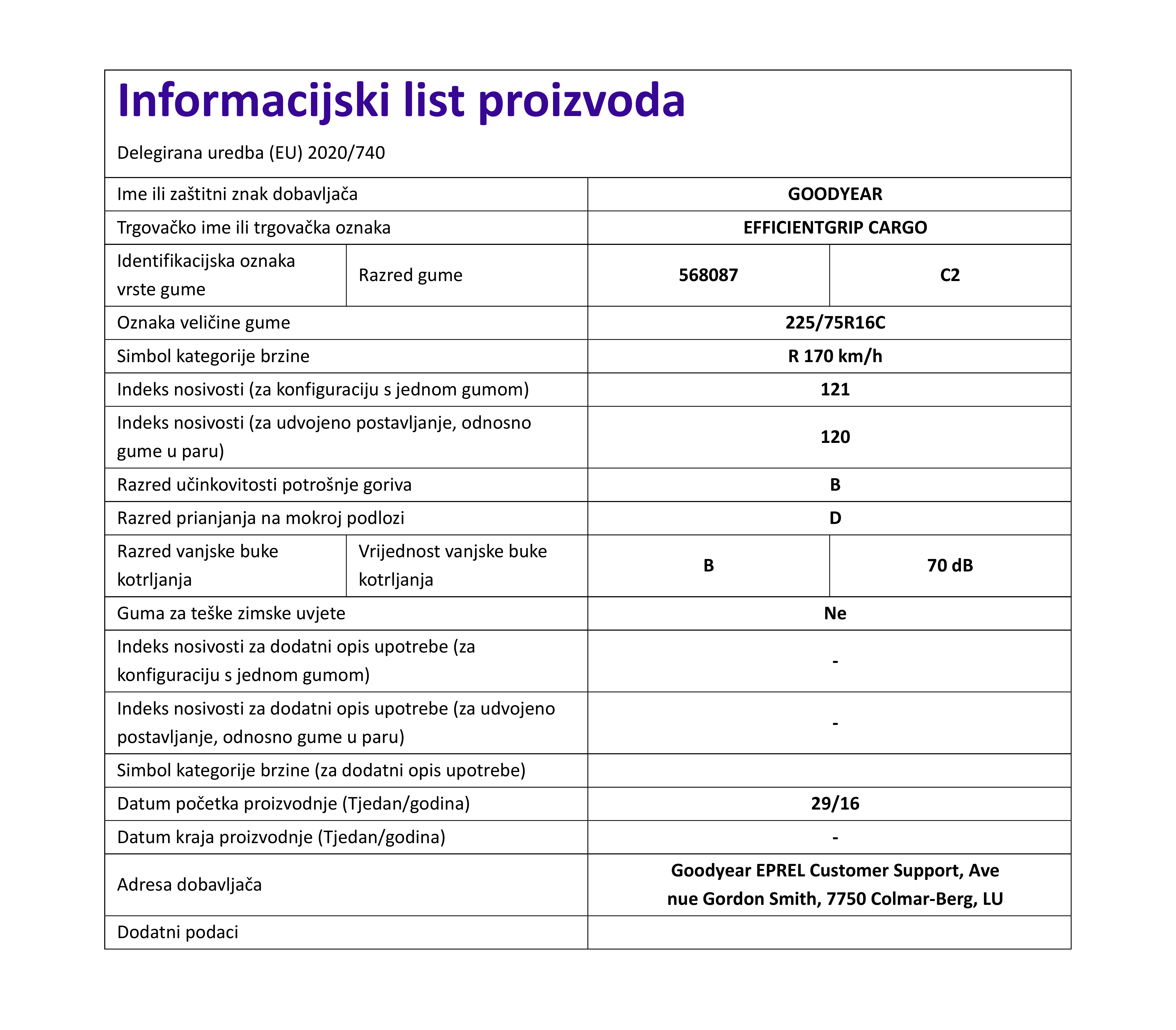 | Iskoristivost goriva | B |