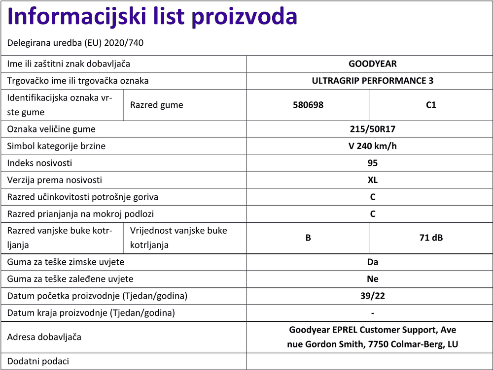Službeni stav proizvođača i distributera guma je da se gume smatraju novima ako su proizvedene prije manje od 5 godina, pod uvjetom...