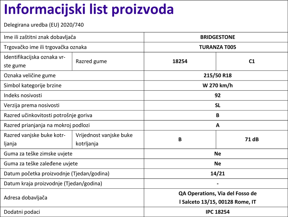 Ljetne gume bridgestone TURANZA T005 215 / 50 R R18 92W