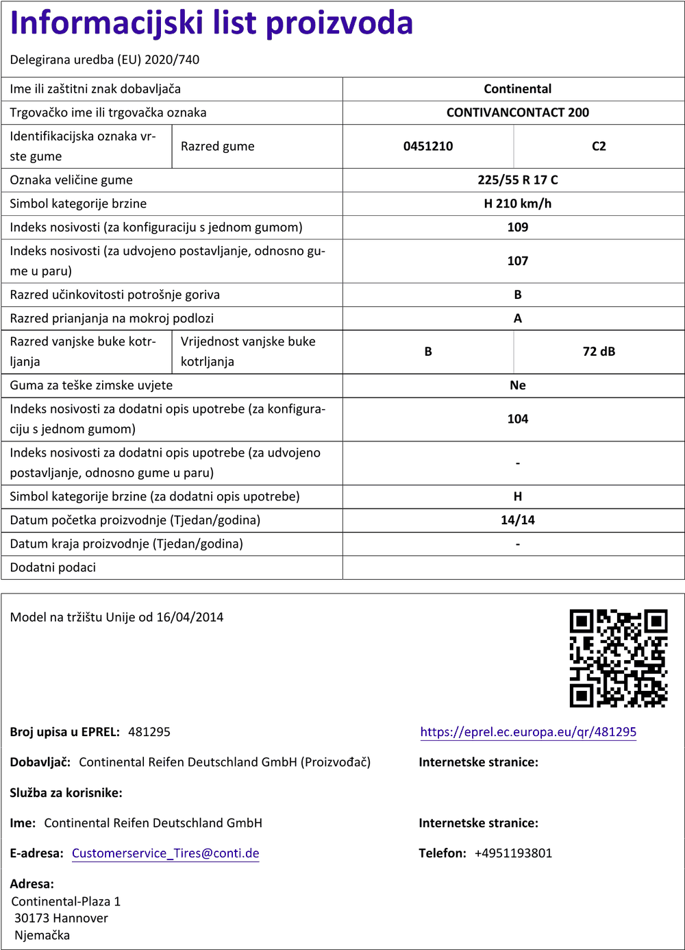 Ljetne gume continental VANCONTACT 200 225 / 55 R R17C 109H
